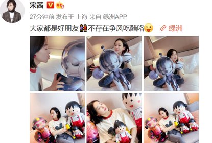 宋茜绿洲晒与精心收藏的手办合影,调皮配文“大家都是好朋友不存...