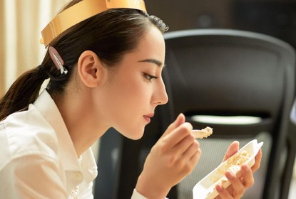 工作室晒出迪丽热巴最新的庆生照。照片中,迪丽热巴穿着白衬衫,...