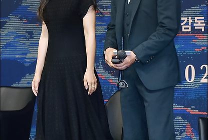 朴赞郁、汤唯、朴海日在首尔东大门出席了电影《分手的决心》的发...