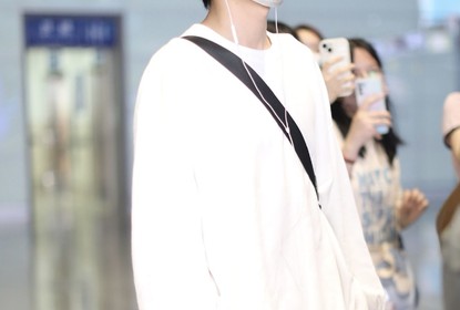 翟潇闻现身长沙机场。照片中,他身穿白色卫衣和灰色运动裤简约休...