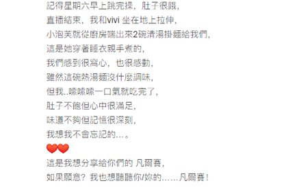 贾静雯在社交平台晒出最新健身的视频。视频中,贾静雯正在学自主...