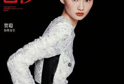 《时尚芭莎》释出一组贺聪最新时尚大片。照片中,她身穿白色亮片...