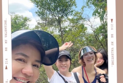 甘比在个人社交账号上晒出一张与女儿刘秀桦(Josephine)、钟楚...