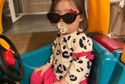 向太晒孙女小奶黄萌照,照片中1岁小奶黄扎羊角辫,咬着奶嘴软萌...