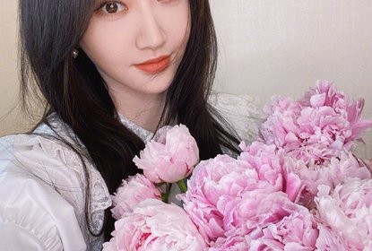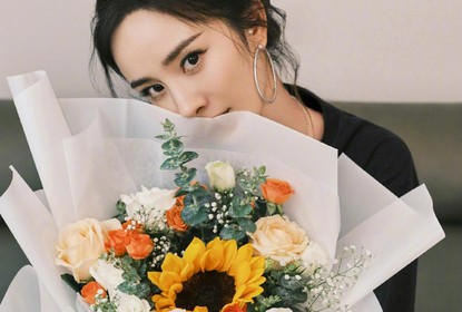 杨幂工作室微博晒出杨幂520捧花照,丸子头造型俏皮甜蜜,配文“花...