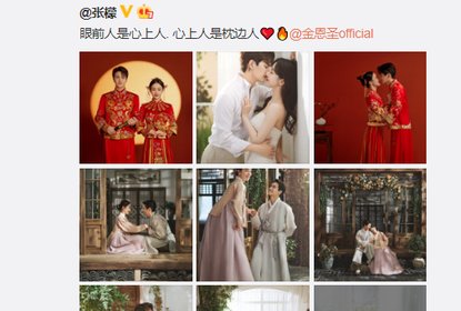 张檬在微博晒出婚纱照,还在微博发文:“眼前人是心上人.心上人是...