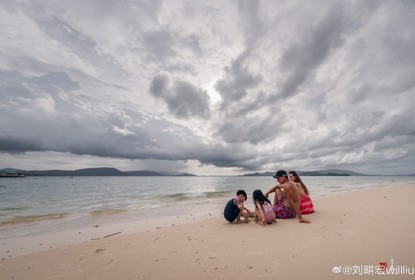 刘畊宏发博晒全家海边旧照。图中他与老婆vivi牵手在海边散步笑容...