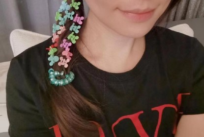 林心如在社交平台晒出女儿小海豚给她绑的头发,配文道:“宝贝说...