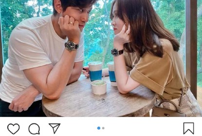 陈乔恩分享了和丈夫Alan的同框照,并说道:“由于登记当天的照片...