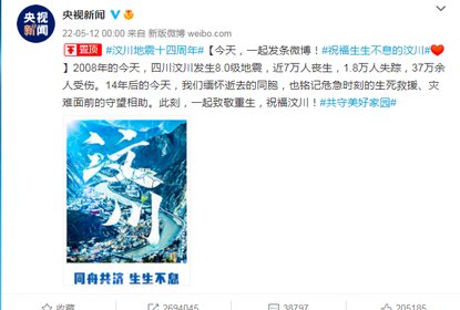 汶川地震十四周年的日子,2008年的今天,四川汶川发生8.0级地震...