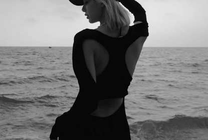Lisa更新社交软件,黑白色调,裹袖露背裙在海边映衬中更显婀娜之...