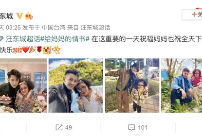 汪东城在微博晒出与妈妈的四张合照,并祝全天下的母亲母亲节快乐...