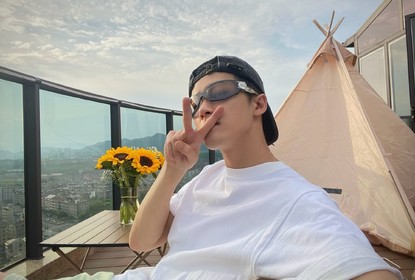 檀健次在微博晒出一组天台露营自拍,图片中他对镜比耶心情大好,...