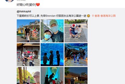 胡杏儿老公李乘德晒出一组带儿子Brendan和朋友去游玩香港海洋公...
