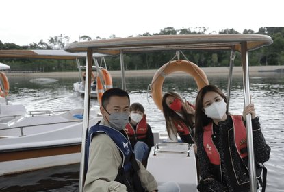 近日,张馨月分享出游照,照片中张馨月与丈夫林峯坐在船上游玩,...