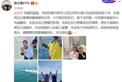 张小斐卡点为贾玲庆生,献上祝福:“亲爱的姐姐,特别的高兴我可...