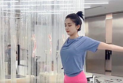 娜扎工作室官方微博晒出娜扎日常健身的一段视频,并配文“运动美...