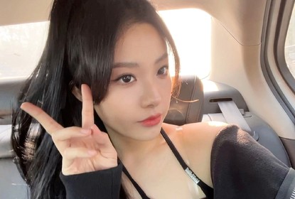 喻言在微博晒出一组车内随拍。照片中,喻言身穿黑色露肩上衣,扎...