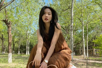 王霏霏在微博晒出一组春游随拍。照片中,她身穿栗色吊带长裙,下...