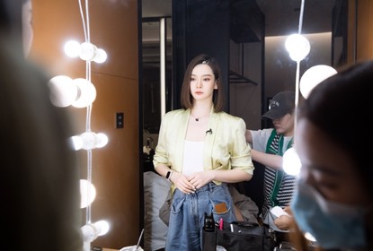 工作室晒出戚薇最新上班侧拍照,照片中,她身穿小西装搭配短发,...