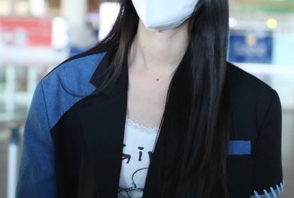 袁冰妍现身机场,身着蓝黑色拼接西装搭配浅蓝色鸭舌帽与牛仔裤,...