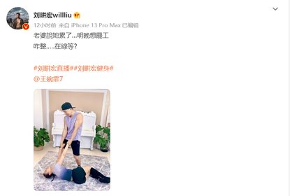 刘畊宏在微博晒照发文称自己老婆说和他健身太累了想罢工,照片中...