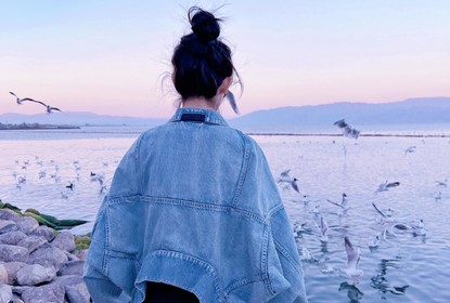 彭小苒在微博分享了一组海边落日随拍。照片中,彭小苒穿着牛仔外...
