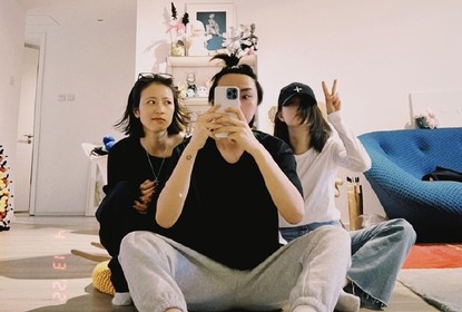 倪妮晒和周雨彤搞怪合影,头发遮脸戴帽比V就是不露脸。文章来源...