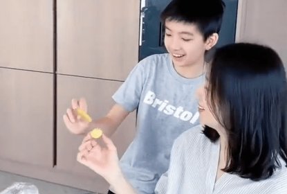 董洁带着13岁的儿子顶顶一同出镜,母子俩一起制作饼干显得其乐融...