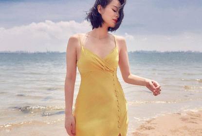 胡杏儿老公李承德在社交平台晒出妻子在海边的美照。图中的胡杏儿...