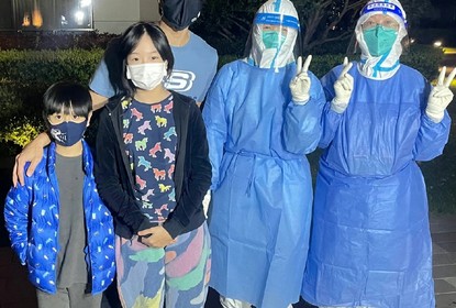 有上海网友发文称偶遇吴尊一家在楼下做核酸,neinei和max身着家...