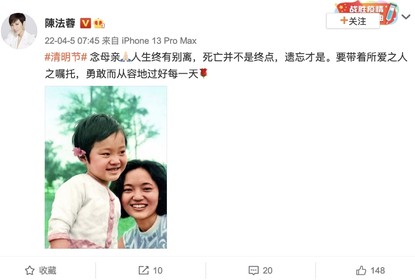 陈法蓉晒旧照怀念母亲:“人生终有别离,死亡并不是终点,遗忘才...