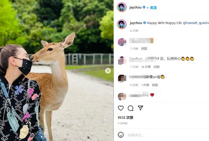 周杰伦在社交平台晒出和昆凌一起游公园的照片,配文:“HappyWife...