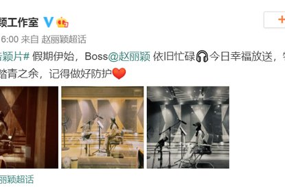 赵丽颖工作室发布一组她的工作照,配文:“假期伊始,Boss依旧忙...