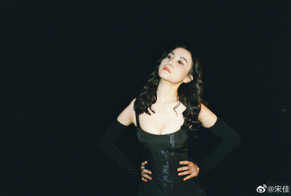 宋佳在微博晒出一组剧场大片花絮照。照片中她穿黑色吊带长裙,皮...