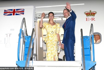 巴哈马,英国威廉王子与凯特王妃乘飞机离开巴哈马,凯特王妃穿黄...