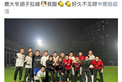 有网友晒出鹿晗与朋友踢球的大合照,鹿晗穿运动服比耶看起来舒适...