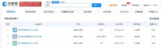近日,新沂李现影视文化工作室企业状态变更为注销,注销原因为决...
