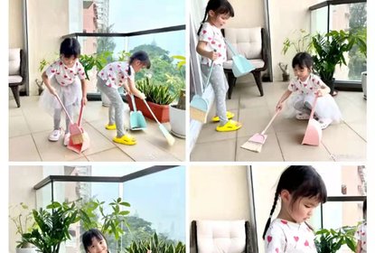 熊黛林在个人社交平台上分享了一组照片,两个双胞胎女儿可爱...