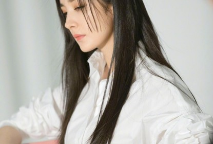 杨幂一组拍摄花絮曝光,图片中她身穿白色长裙,一头黑长直的秀发...