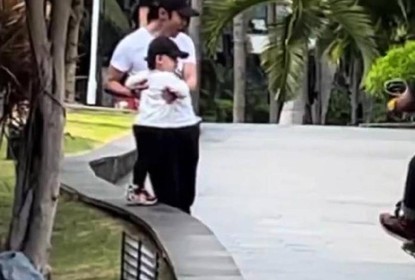 有网友在社交媒体上分享自己在三亚偶遇带娃的撒贝宁。图片中撒贝...
