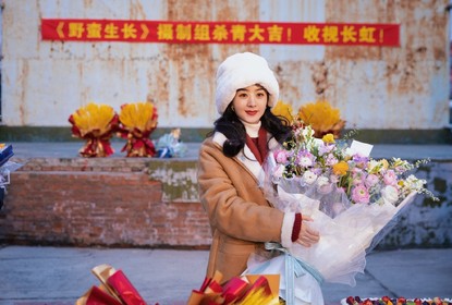 赵丽颖工作室晒出赵丽颖《野蛮生长》杀青照:“恭喜Boss赵丽颖正...