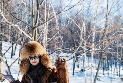 赵丽颖工作室分享一组雪地大片。照片中赵丽颖身穿棕色大衣搭配毛...