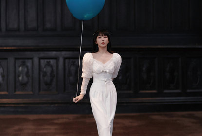 工作室晒出杨紫一组活动造型。照片中,杨紫穿一身白色泡泡袖长裙...
