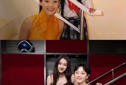 孙俪在微博晒出与关晓彤2004年以及2022年的合照。二人在楼梯前合...