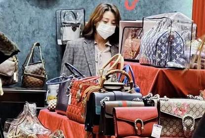 近日,有网友在三里屯一家中古店遇到殷桃,并晒出她在店里挑选包...