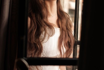 虞书欣公开一组落日余晖写真,图片中她身着白色长裙,无刘海的温...