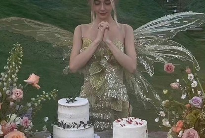 好友晒出一组Angelababy生日会现场照片。baby身穿绿色闪光裙搭配...
