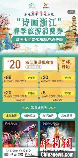 浙江面向全中国游客发放1400万元旅游现金消费券,消费品类包...