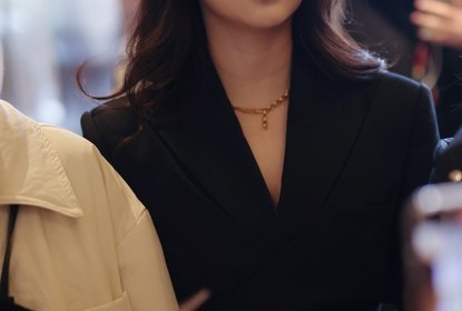 上海,金子涵现身某酒店大堂,参加活动。她身穿黑色西装外套,长...